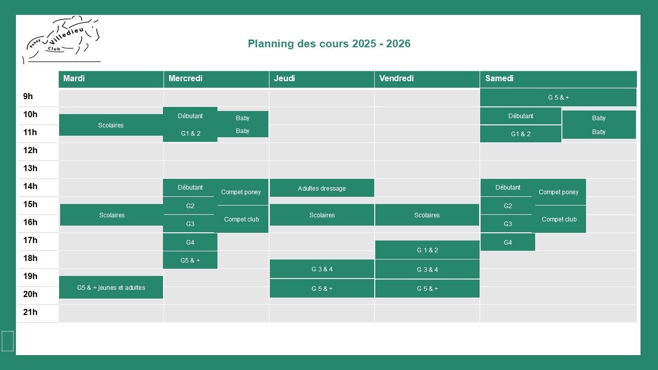 Planning des cours 2025 / 2026